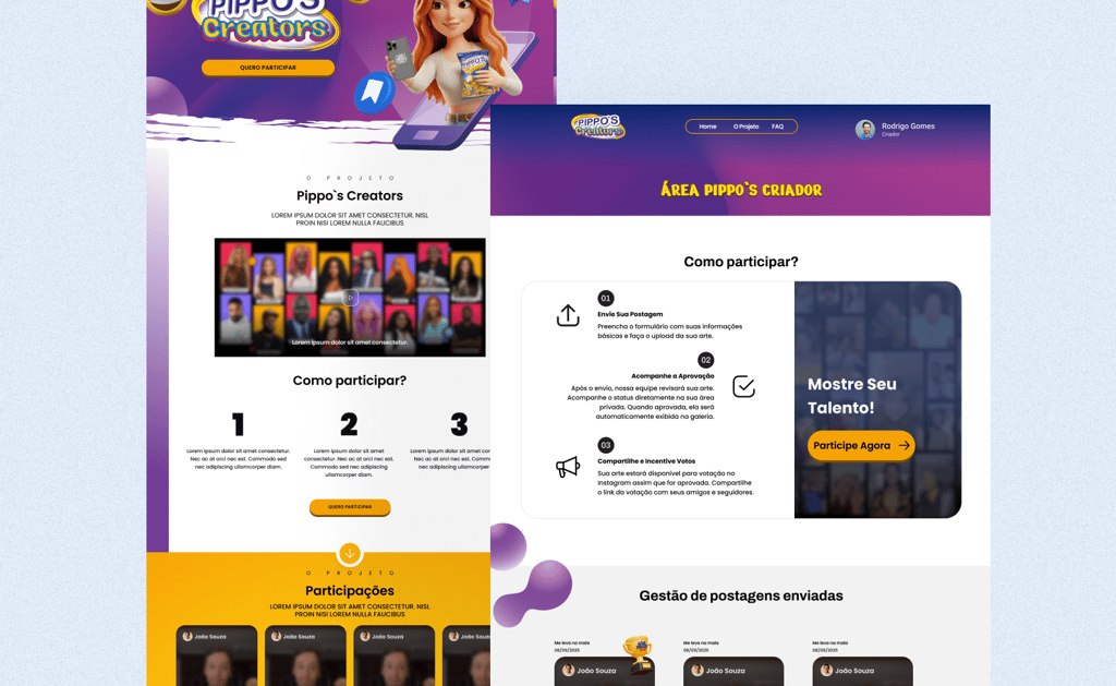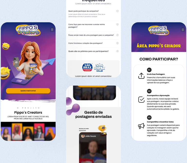 Desenvolvimento de uma plataforma digital gamificada para a campanha Pippo’s Me Patrocina, com foco em influenciadores digitais.