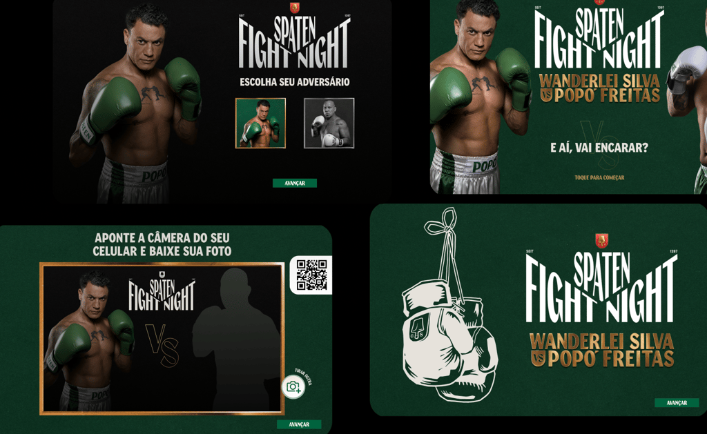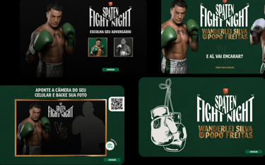 Criação de uma experiência digital interativa em um tablet, permitindo que usuários tirem uma foto com lutadores brasileiros(Wanderlei Silva ou Popó) e compartilhem o resultado nas redes sociais via QR Code.